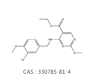 英文名称:4-(3-chloro-4-methoxybenzylamino)-5-ethoxycarbonyl-2-methylthiopyrimidine